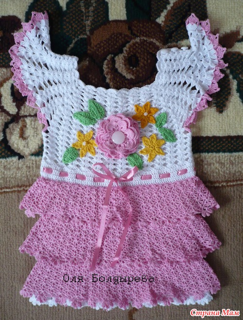 Девочка, которая заказала такое платье для своей доченьки, за оригинал взяла работу Елены Савиной. Мое платишко на малышку 3-4 месяцев. Ниточки Пехорка "Ажурная" и "Виолет", крючок 1,5. Схема кокетки и подола Читать полностью