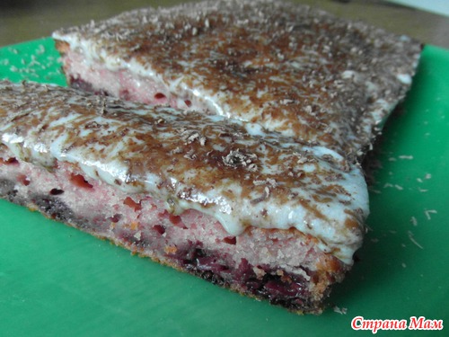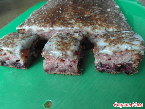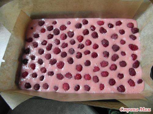 -еще ягода по рецепту вдавливаются в тесто... я думаю лучше просто накидать сверху, а то тесто поднялось и они получились на дне...