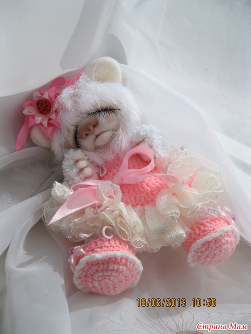Юсечка маленькая девочка. Ростиком 22 см. Головка поворачивается. Глазки открываются и закрываются. Ротик открывается и закрывается. Любит и поиграть и поспать. Одежда связана крючком и снимается. Мордочка сухое валяние. Ищет мамочку...