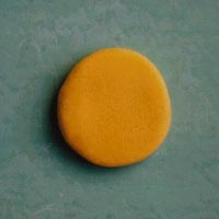 Лепим основу нашей игрушки. Для этого небольшой кусочек теста нужно скатать в шар. Получившийся шар слегка раскатываем скалкой до толщины 1 см (можно просто сдавить шар ладошками и сформировать круг).