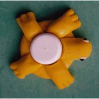 А теперь маленький секрет: чтобы панцирь у черепашки получился объёмным, берём крышку от пластиковой бутылки, слегка вдавливаем в основу.