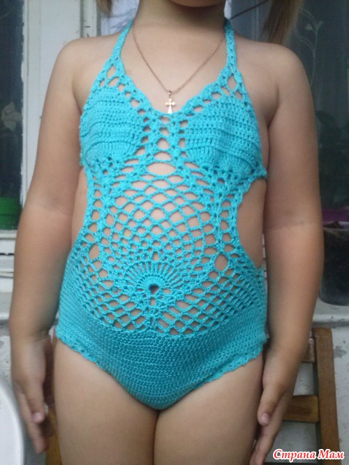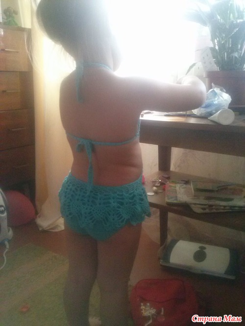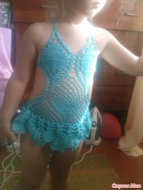 Связала своей доченьке купальник всем уже известный, долго не решалась но столько соблазна и подумала, а у меня что руки не с того места растуть и в итоге что навязалось. Был в начале без юбки,