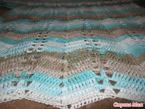 Я решила связать что-то наподобие узоров Миссони, для этого использовала пряжу Белла Батик (хлопок 100%, 180м/50г) и добавляла белую Бегонию. Крючок №2,5 и №2 (обвязка).