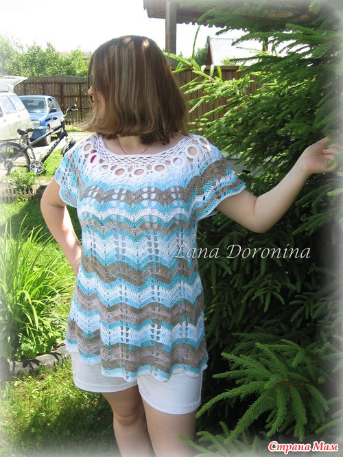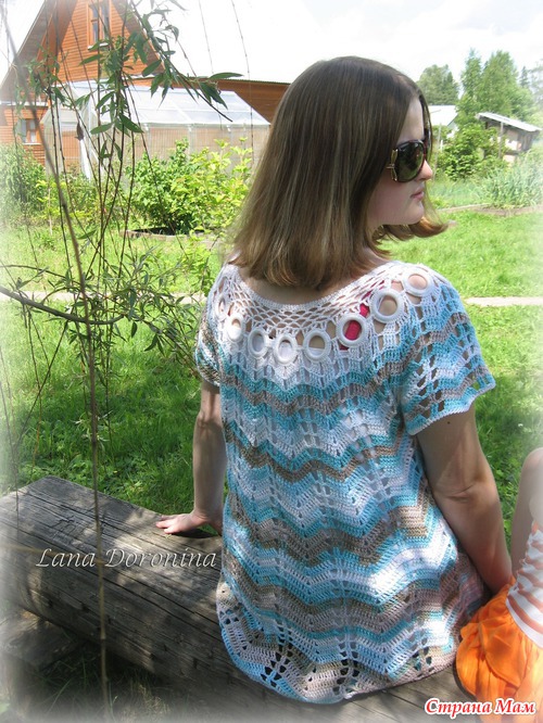 Наконец-то мне удалось сделать фото туники на модели, так сказать. Вязала эту туничку для старшей дочери, которой вечно некогда сфотографироваться. И вот на даче устроили фотосессию. Дочке туника очень понравилась, чему я безумна рада