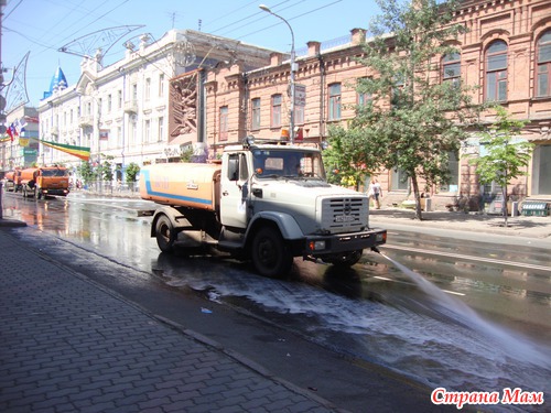 Вся центральная улица (Мира, конечно) - в конфетти. Но у нас научились их очень быстро убирать.