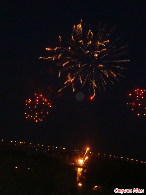 Ну и под занавес – в 23.40, был фейерверк – с трех разных точек города одновременно. Пиротехническая индустрия идет вперед семимильными шагами, каждый раз появляется что-то новенькое. Даже не сомневайтесь, эта фотография, сделанные старенькой «мыльницей», не передает и части всей красоты!