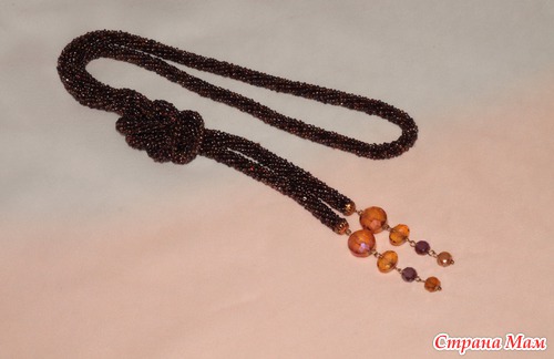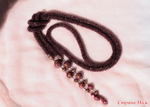 Лариат "Спокойный вечер" сложного цвета, с вкраплениями бисера гранатового цвета.