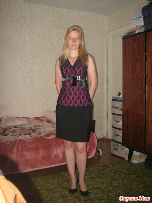 Очень боялась за размер кофточки, тк сверху я не совсем 44 размер, но подошло идеально. Юбочка вообще прелесть. В ней куда-то спрятался мой животик.
