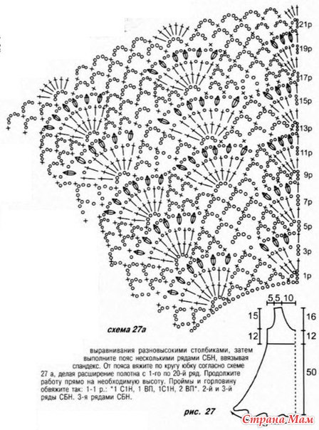 А все началось с пробного образца квадратика - и вот целое платье связалось. На него ушло 3,5 м. вискоза "Рива" ( 100гр-500м) и использовала вот эти схемы