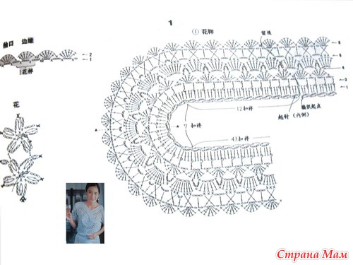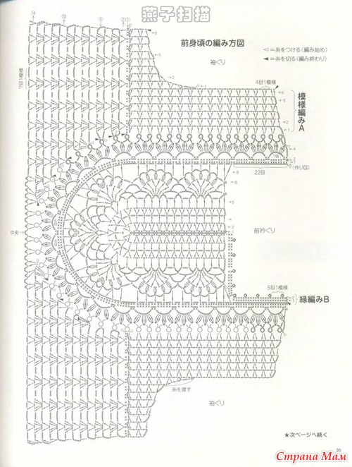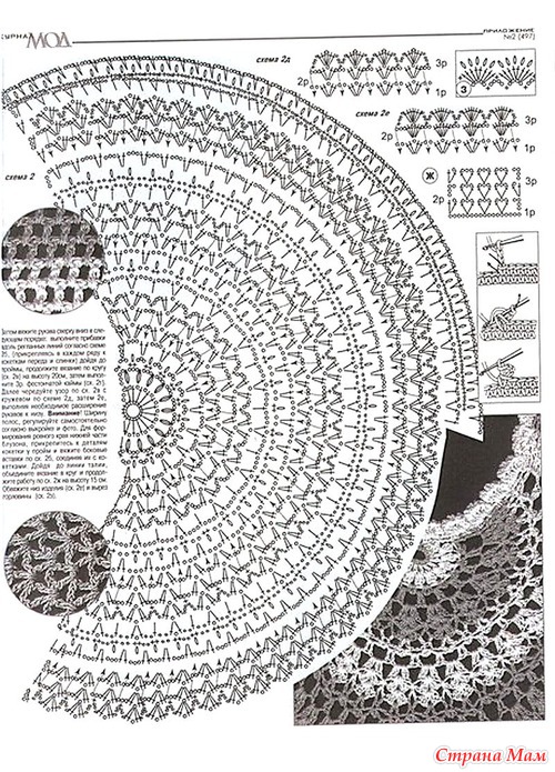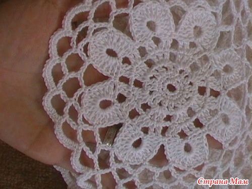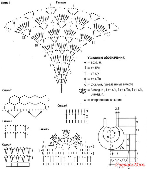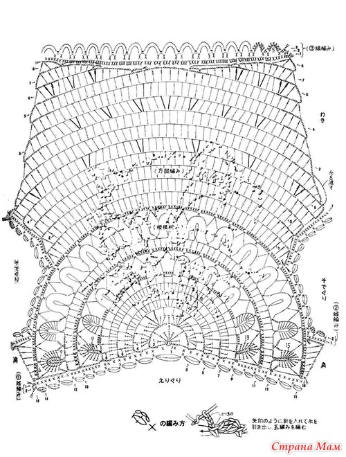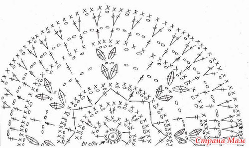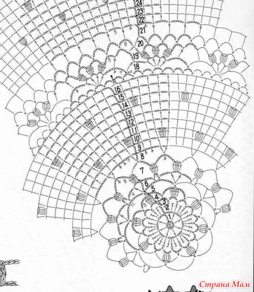 Для 4-й части (нижняя кайма) связать 22 (24) арки из возд. п., после 8-го р. для дугообразного края вязать 5 р. по схеме (арки для каймы).