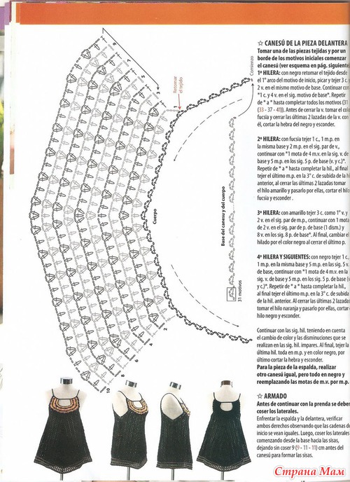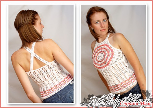 Спинка: Вязать также, как перед, но без бретелек.