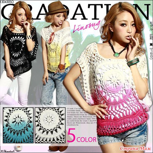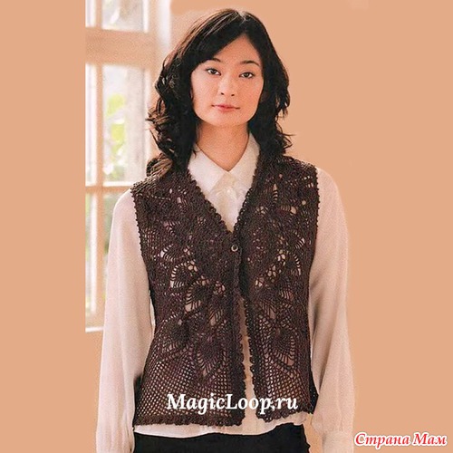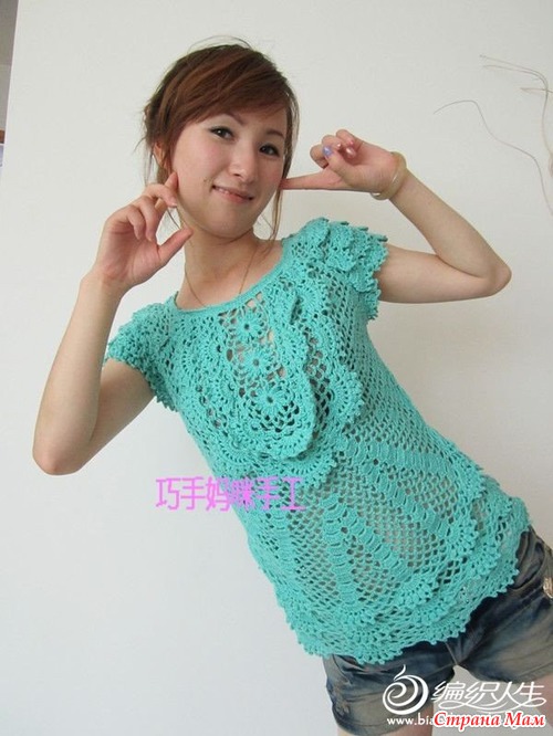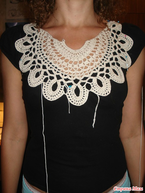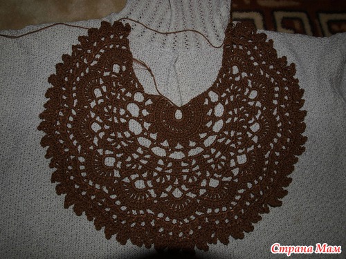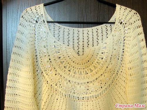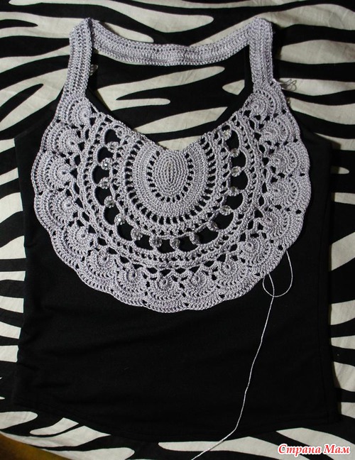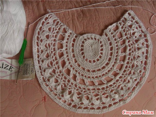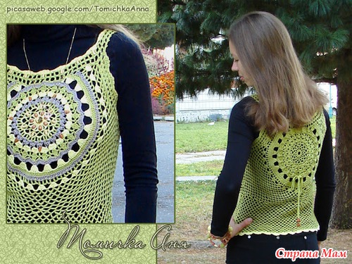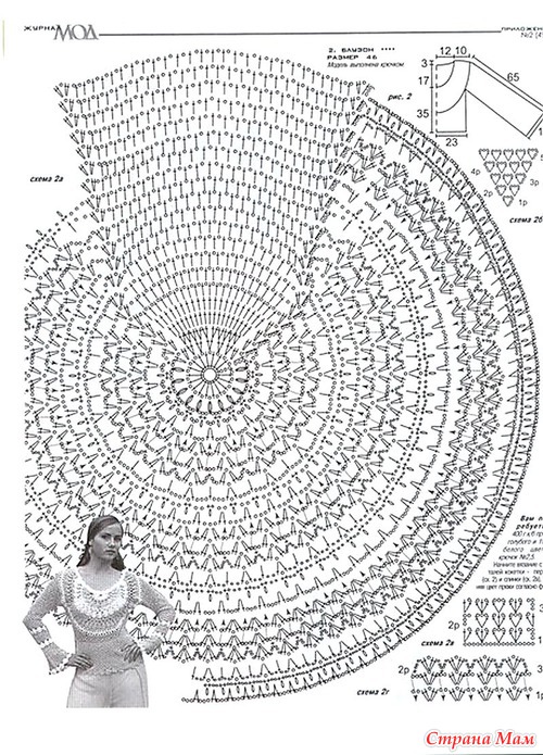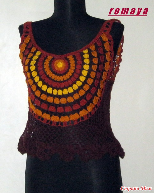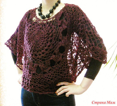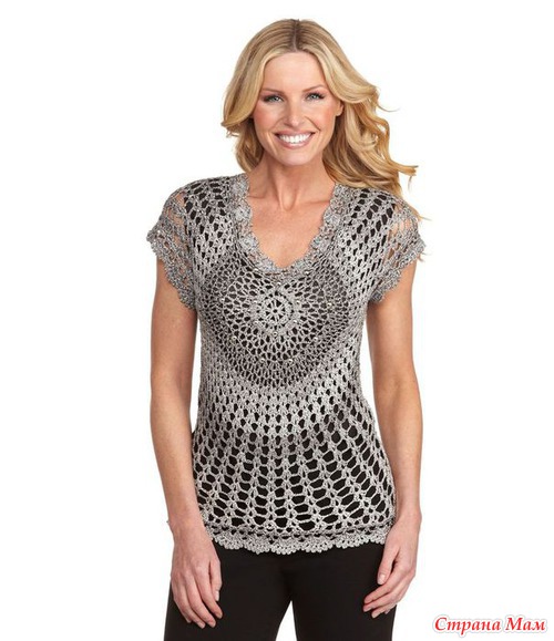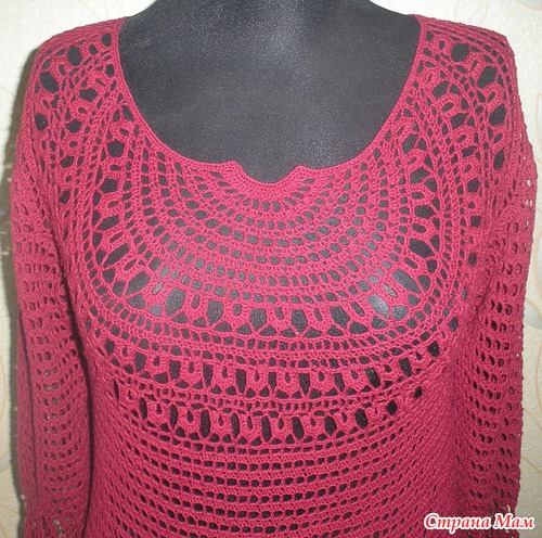 Хочу такой круглый мотив связать на тунику (сочетание вязания и ткани),но у меня грудь №4,вот и волнуюсь,что еще увеличит