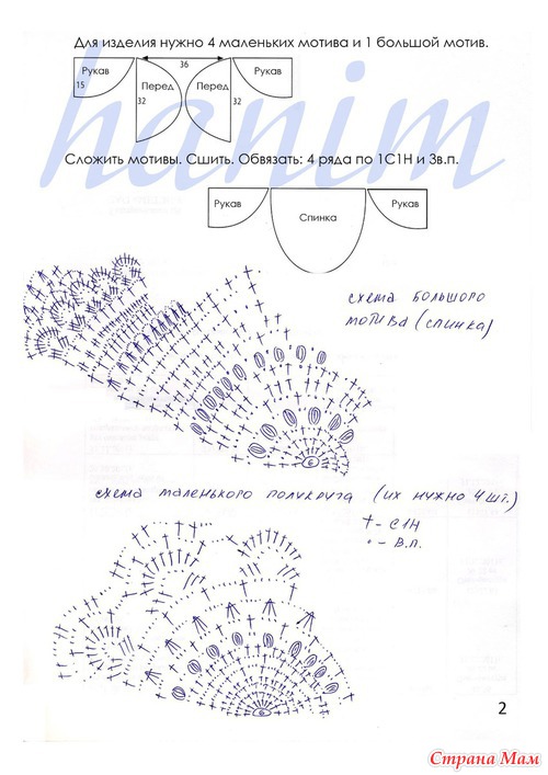 3-й р.: каждый ст. с/н удвоить = 48 ст. с/н. и продолжить вязание по схеме.