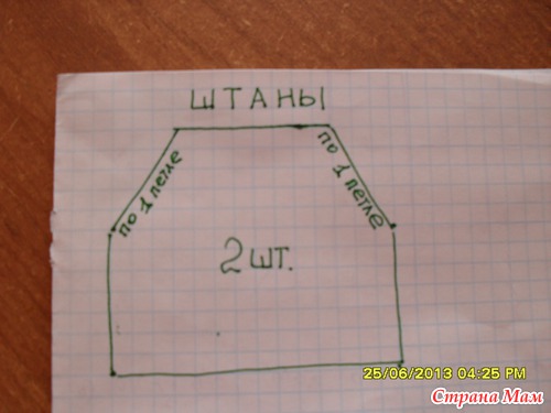 Схема штанишек, сначала вязало прямоугольник, а потом с кажной стороны убавляла по одной петельке