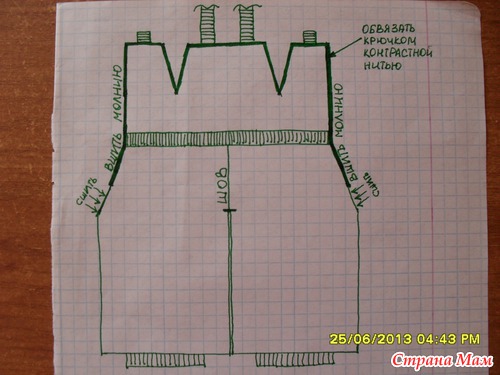 где обресовано жирно ручкой, там обвязывала крючком, потом связала на спицах платочной вязкой лямочки