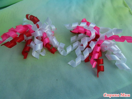 Спасибо, рада, что понравились. Завитушки делаются так: Берется круглая деревянная "палочка", например для суши (у меня были деревянне шпажки для гриля), затем фиксируем ленту на одном конце, накручиваем и фиксируем на другом конце. Затем ставим в духовку градусов на 150-200 минут на 7, вынимаем, остужаем, аккуратно раскручиваем, разрезаем на нужные отрезки, сшиваем и клеим к любой основе.