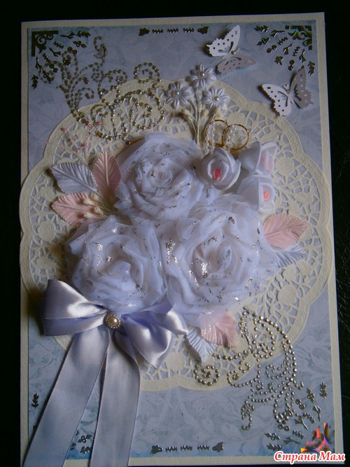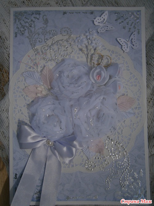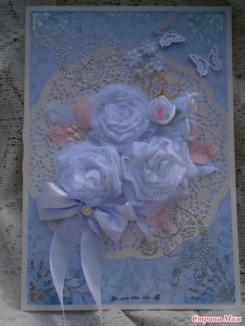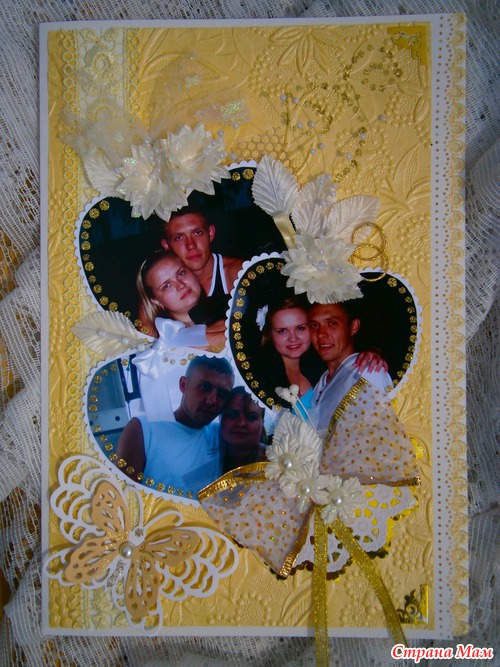 Я вам еще не надоела со своими открытками-обложками?)))) У меня опять есть, что вам показать! Настала пора свадеб и у меня за последнее время уже четыре заказа на открытки. Сегодня хочу показать вам две крайние (не скажу последние). Формат А4. Очень мне нравится делать большие открытки.