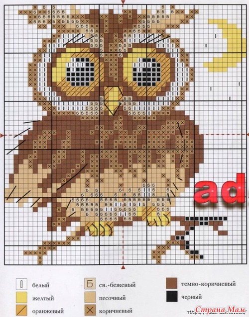 Тэги: Вышивка крестиком, схемы, совушки