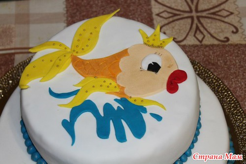 4. С рыбкой- это сыночку старшему на ДР на скорую руку) Нам в этом году 14 стукнуло. Может и не подходит такой сюжет для 14-летнего, но он пожеланий никаких не высказал, а времени у меня мало было, ну вроде доволен остался. Неровности внизу- это мелкий мой наковырял), а поправить уже и времени не было, гости на пороге стояли. Внизу медовик, верхний шококипяток- его любимые. вес не знаю