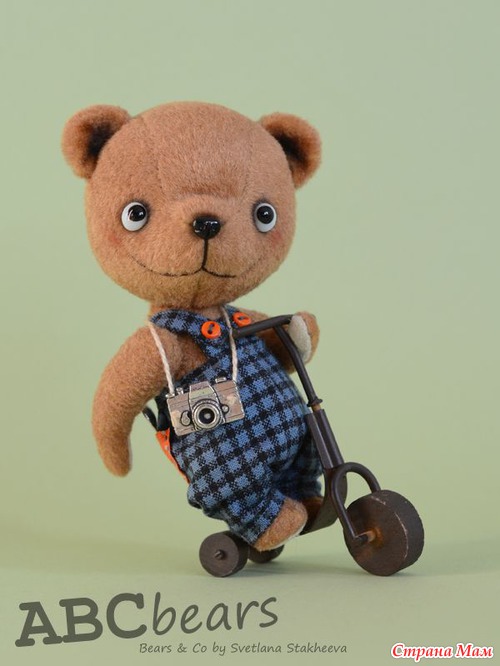 Размер медведика 10 см. Стоять умеет только на самокате. В единственном экземпляре.