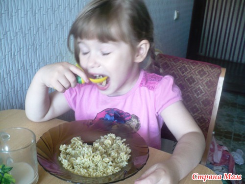 доче макароны сварила, бедная девочка моя, сидим на больничном, ничего не ест, аппетита нет, а вот макарошки с петрушкой и чесночком целую тарелку умяла