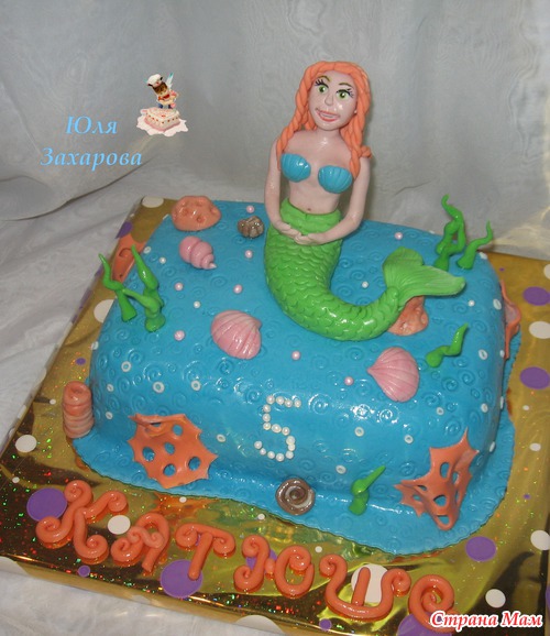 Тортик с русалкой для дочи моей подружки, в прошлом году я ей делала Китти, и это был мой первый торт, так сказать, на заказ, только, естесно, я его делала в подарок, но после него стала брать заказы платные, так что, девочки, у меня ЮБИЛЕЙЧИК)))