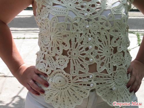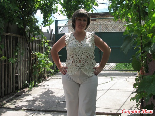 Модель выполнена в технике сцепного гипюрного кружева, нитки Сосо, крючок № 2. Женщина, для которой вязала, покрупнее меня, поэтому на ней топик выглядит лучше. Это мой первый опыт подобного вязания. Спасибо всем, кто заглянул. Читать полностью