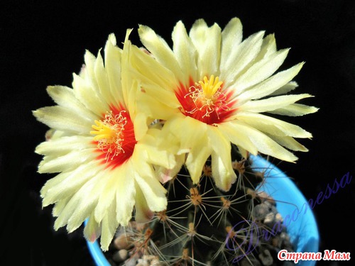 А ещё сейчас цветёт собрат первого кактуса - Thelocactus bicolor:
