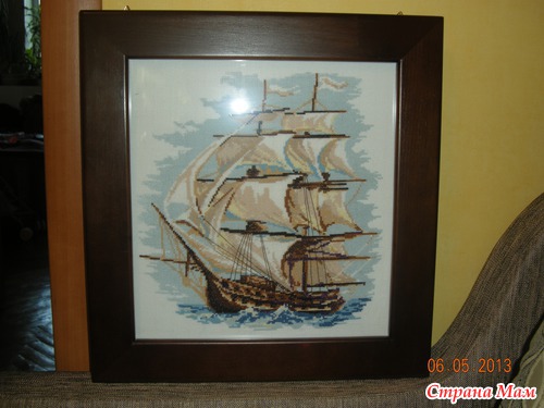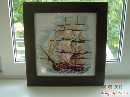 Я вышивала, а муж своими золотыми ручками сделал рамку для моей работы и оформил.