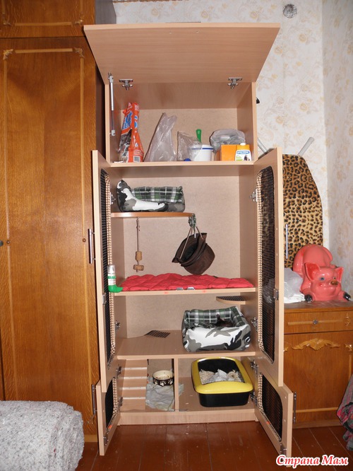 Муж принялся делать ему клетку (мы в шутку называем CRASH HOUSE) пока мы все делали питомец жил в обычной коробке - он промучался около 5 дней))))