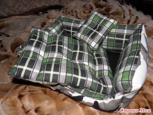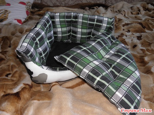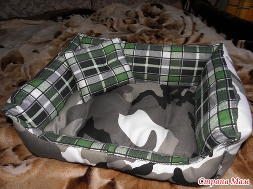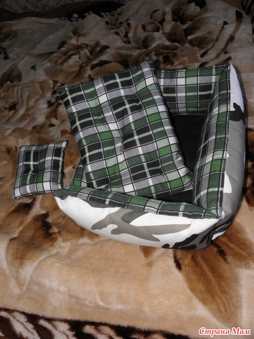 Паралельно я ходила по магазинам и смотрела на разные диванчики... ох как слунка текла их купить, такое все красивое, а муж мне - "Ты и сама не хуже сделаеш!"; и действительно взяла один диванчик так пристально усё расматрела, а потом пошли выбирать ткань... мне очень понравилась камуфляжная и очень мягкая на пеленочку (та что внутри). Взяли еще синтепон и ткань на дно изделий у нас была! В итоге по цене одного магазинного дивана получилось два - нужного мне размера, да еще и на третий хватит))))