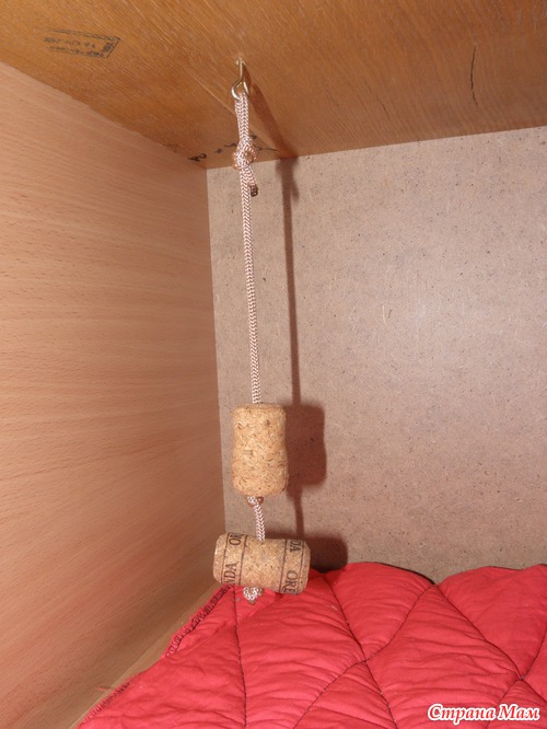 На второй день сделали полу-мягкий матрасик на третий этаж, и я нашла свою старую шляпу (котору моль немного подгрызла) и получился такой гамачок.