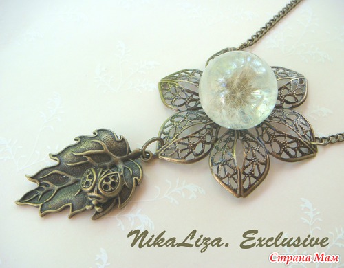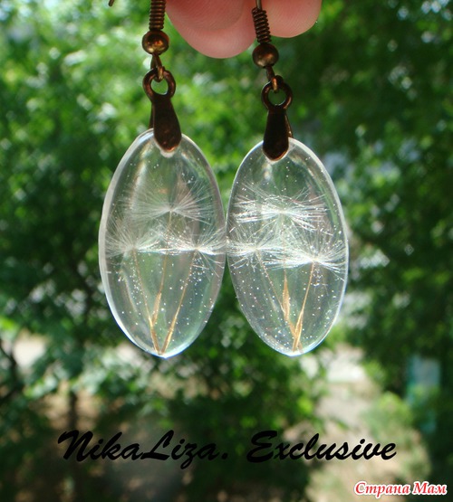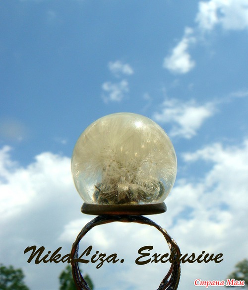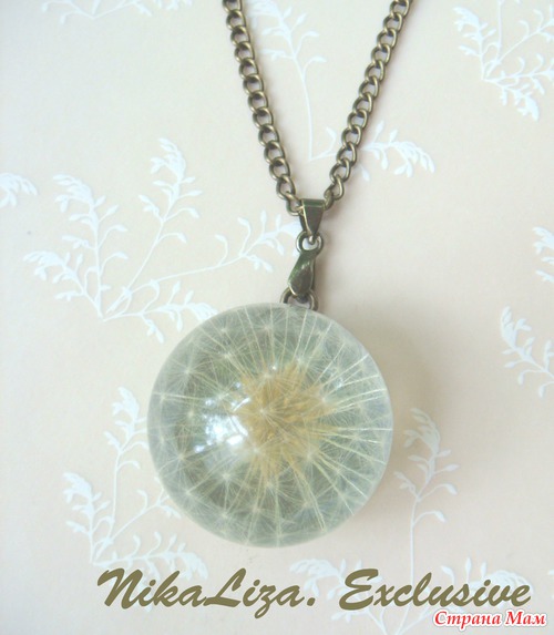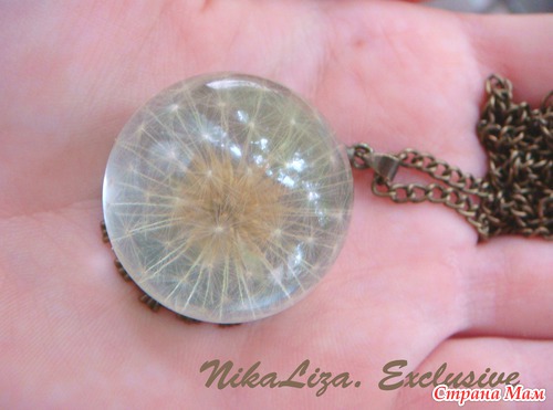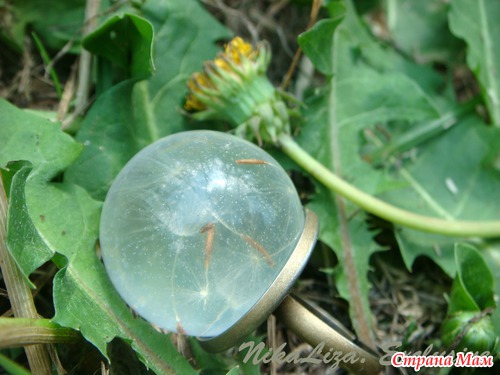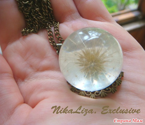 Целый одуванчик внутри шарика из эпоксидки. В нашем парке возле дома их было просто миллион, дети бегали по полянке, срывали букеты и засевали вновь, чтоб маме потом было с чем работать)
