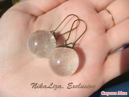 Серьги-шарики с парашютиками одуванчика: