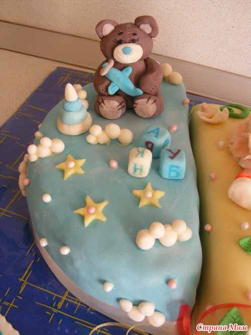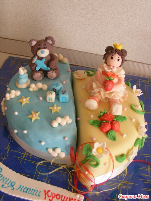 Здравствуйте! Вот мой отчет по двойному тортику - для девочки 7 лет (правда принцесска больше подходит для маленькой девочки, сделала Винкс - все получилось, но лицо страшное и грудь 3 размера, муж сказал, что она больше для взрослого торта подходит, пришлось заменить на принцесску) и мальчику 1 год. Как всегда - молочная девочка, сметанно-творожный крем, пропитка чудо молоко, грецкие орехи и чернослив - стандартный набор
