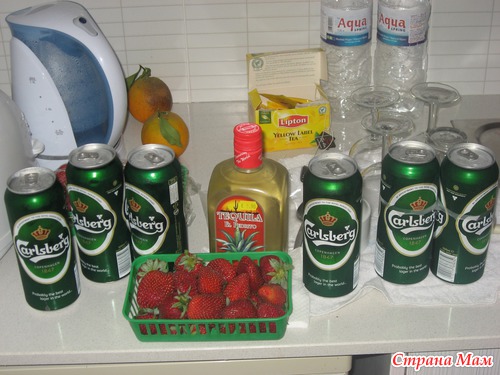 Только такое содержимое было в нашем холодильнике : Клубника + выпивка и никакой еды
