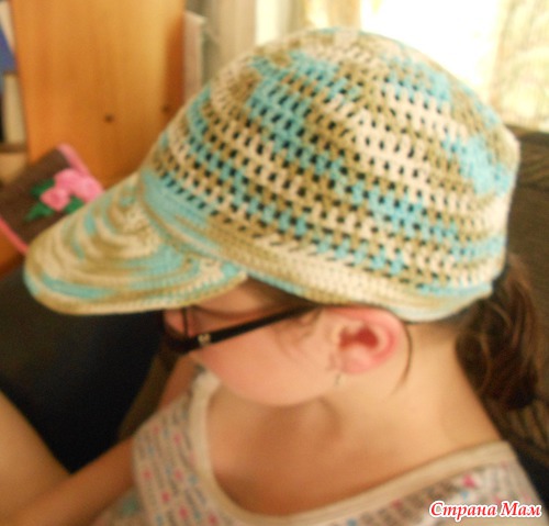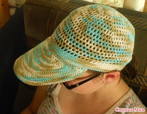 Саму бейсболпчку связала просто сеточкой, козырёк покупной обвязала.