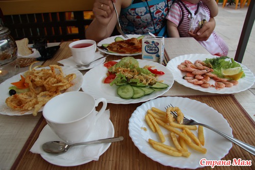 А Дима заказал отварные креветки и картошку-фри) А еще запутал официантку и в добавок появились кальмары в кляре)