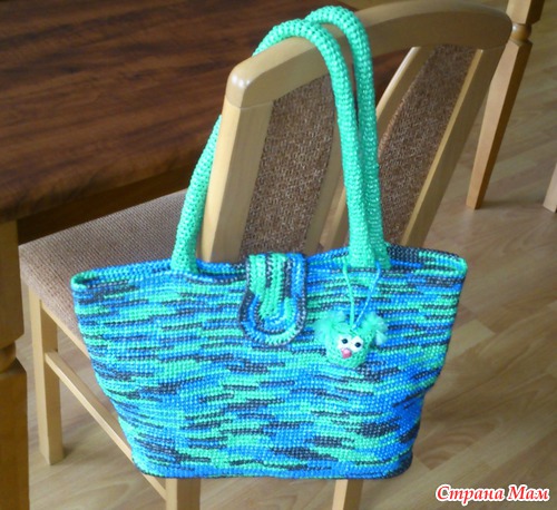 Два года назад я вязала вот такую сумку из мусорных пакетов