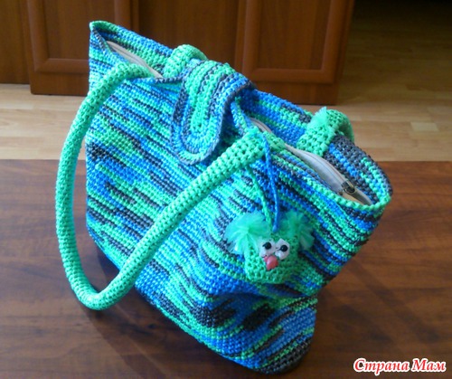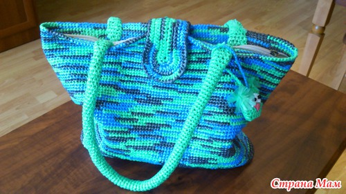 Первый раз вязала на заказ... клиентка осталась довольна. Ура, я рада!!! Носит сумочку с удовольствием! Ушло три упаковки пакетов для мусора по 30 шт, 35 литров.