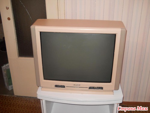 А еще, мой старый черный телевизор совсем не вписывался в такую светлую горницу и я его... тоже покрасила