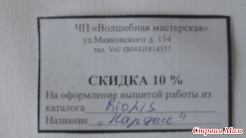 Еще был талон на скидку при оформлении картины у них.