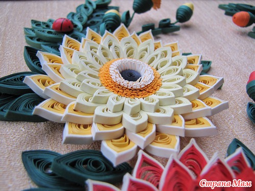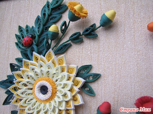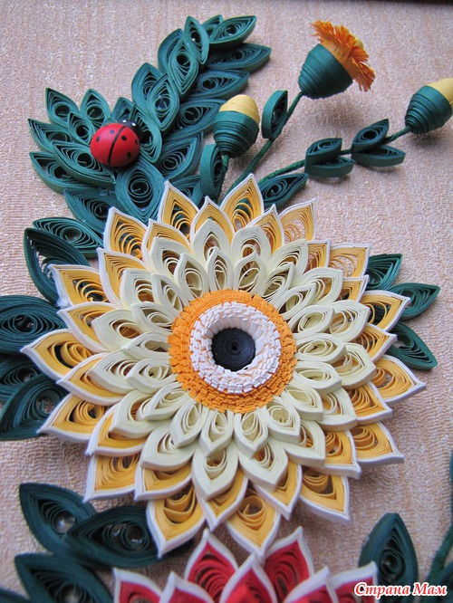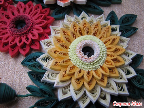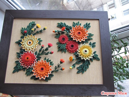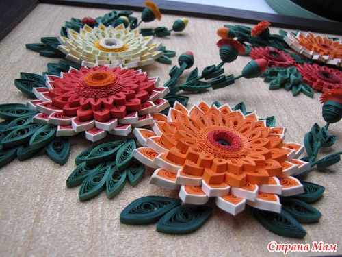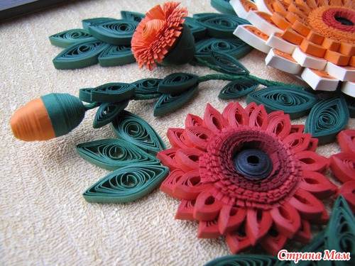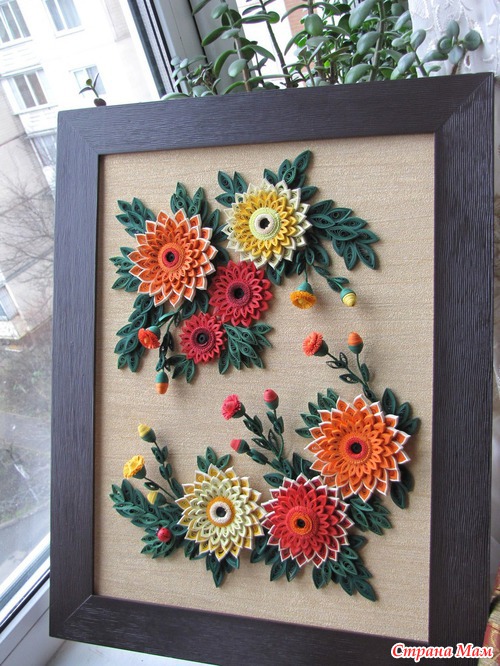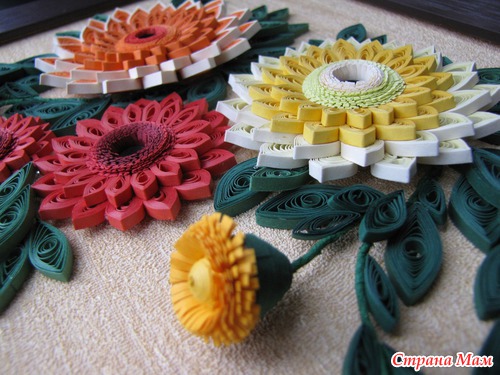 Картина "Герберы" Эта была моя первая работа, самая сложная и самая любимая. Размер картины 50х40 см в объёмной рамке под стеклом. Использовала бумагу для квиллинга, проволоку, и, конечно, клей. ))) Читать полностью