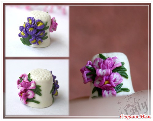 ))) И вот, что получилось (безусловно, огрехи периодически возвращают к изначальному варианту, и глядя на некоторые наперстки, хочется добавить объёма, изменить фактуру или цвет).