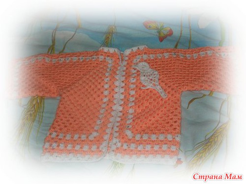 Связалась вот такая кофточка с птичкой для маленькой модницы. очень надеюсь, что понравиться. Моделька пока без пуговиц... собираюсь пришить крупные бусинки.