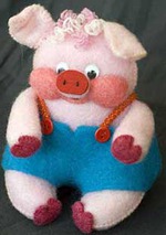 Поросёнок сшит из синтетического ватина, можно использовать драп или сукно