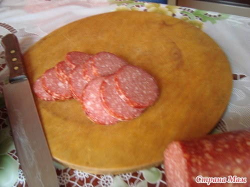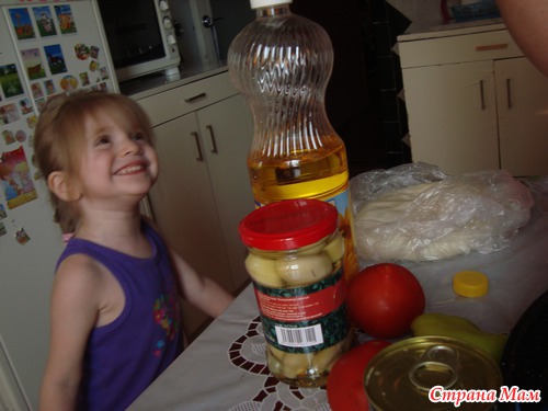 Пока тут Нигяр сыпала, я занималась самый трудной работай, чистила кожурки от колбасы)