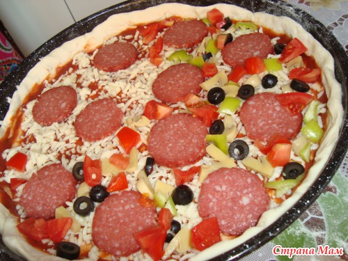Посыпали с одной стороны перчик болгарский оливки грибы, на любитела кто какую сторану любит