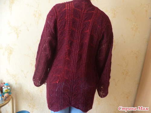 Но я выбрала узор с ярко-выраженными полосами и, может, перемудрила – вязала отдельно прямоугольниками: прямоугольник спины, прямоугольники рукавов, прямоугольники полочек, которые чуть убавляла с того края, где планка.