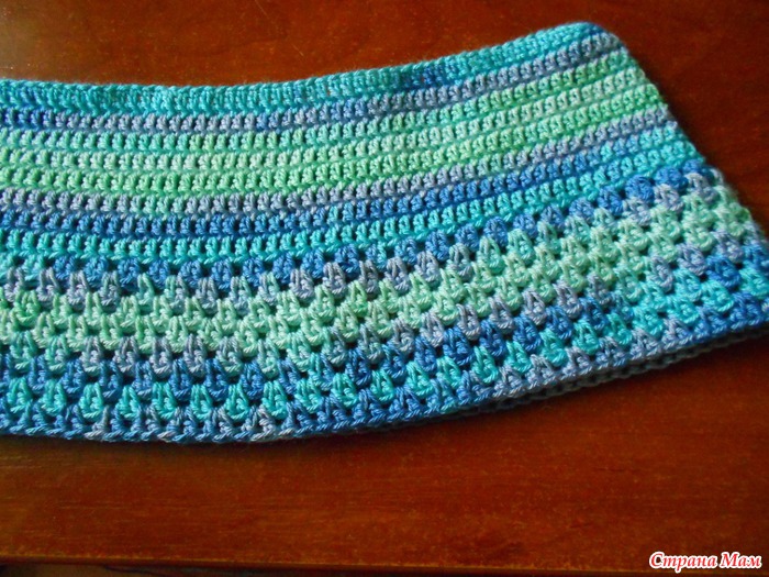 уже осталась 1/3, и я только досмотрелась, что девочка чьей работой я впечатлилась вязала столбиком с одним накидом и поэтому у нее юбочка аккуратней моей будет